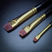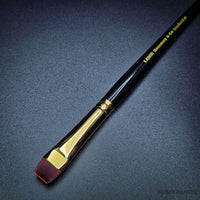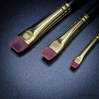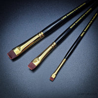 For smaller areas, use the edge of the brush in a similar manner. For many smaller areas ("erase" and/or highlights), try using a Shiraz Short Flat, sizes #1 and/or #2.
