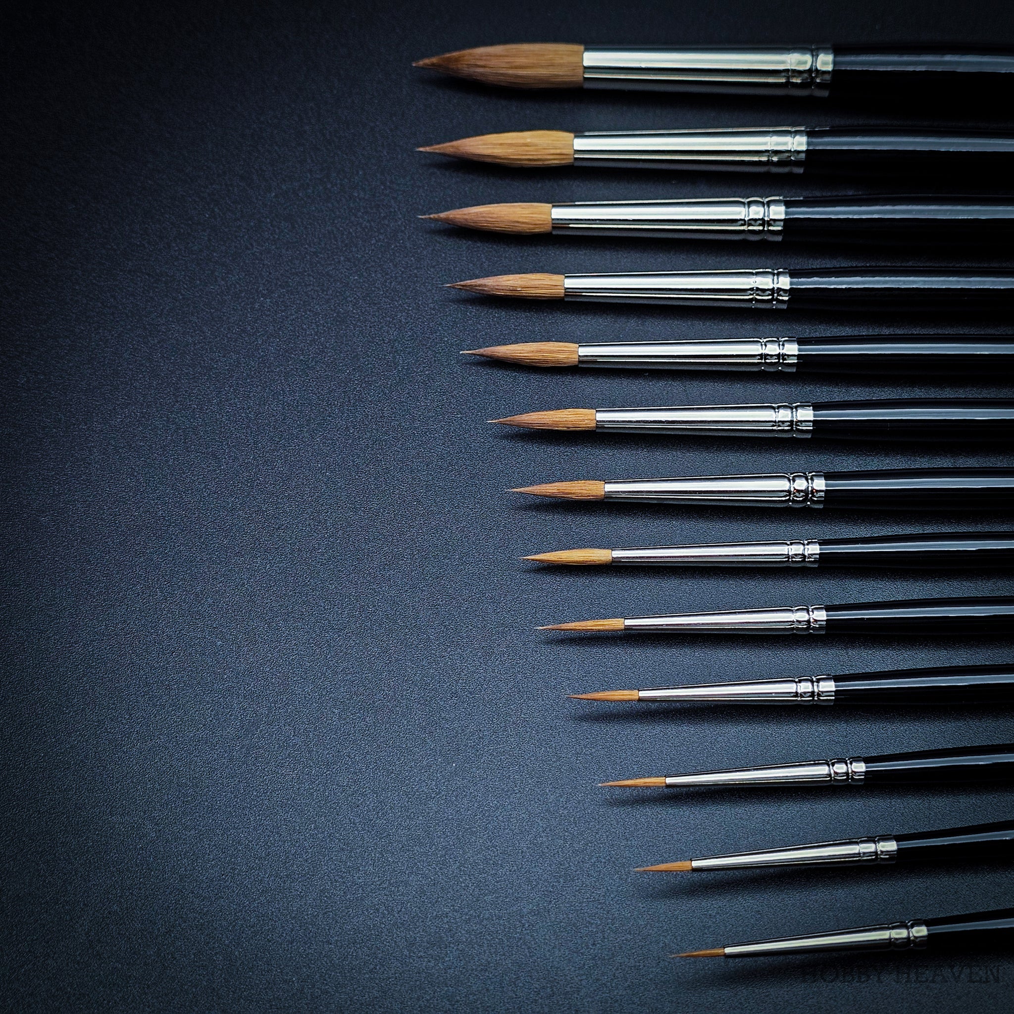 Engineered with a generous belly design for optimal medium retention and a precision-tapered tip that maintains its shape. Experience seamless transitions between broad strokes and the finest details, making these brushes perfect for both watercolor and miniature painting.