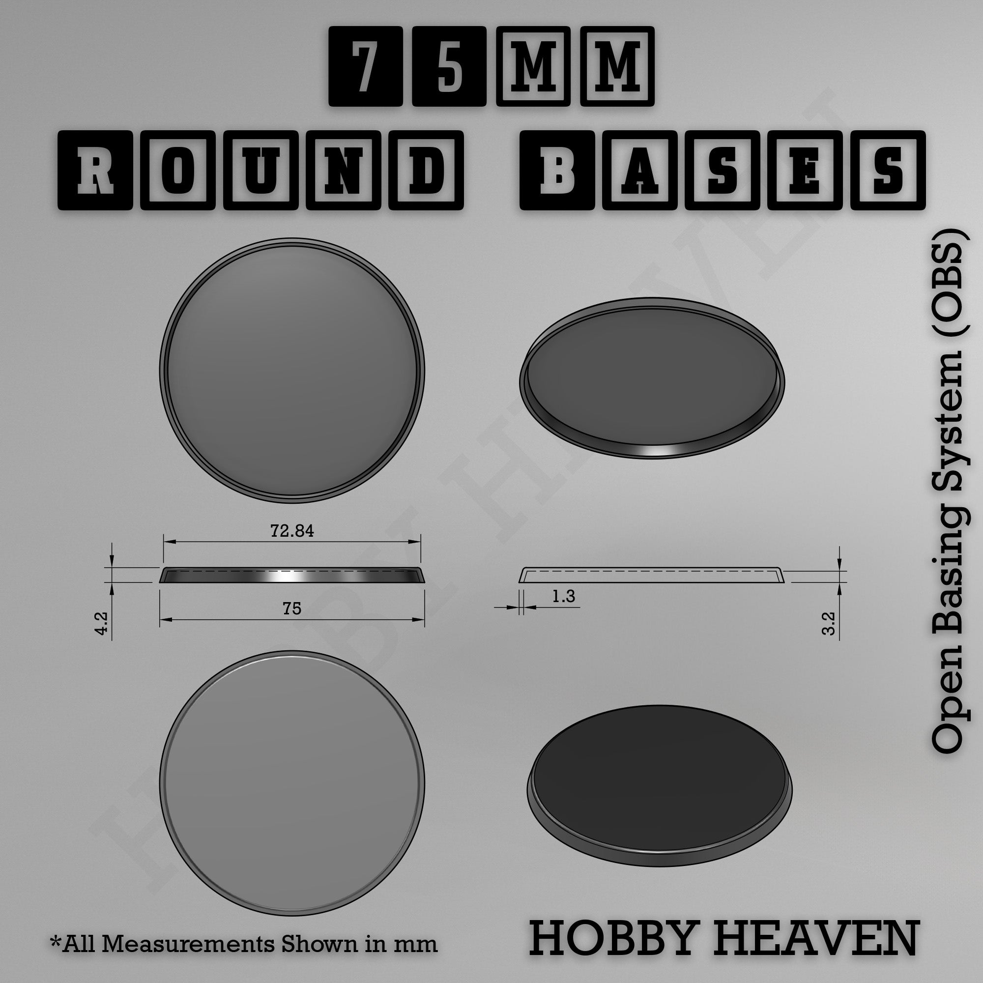 📏 75mm fills the gap between 60mm and 80mm - ideal for larger characters, small monsters, and centrepiece models that need room to breathe without going full monster-base territory.