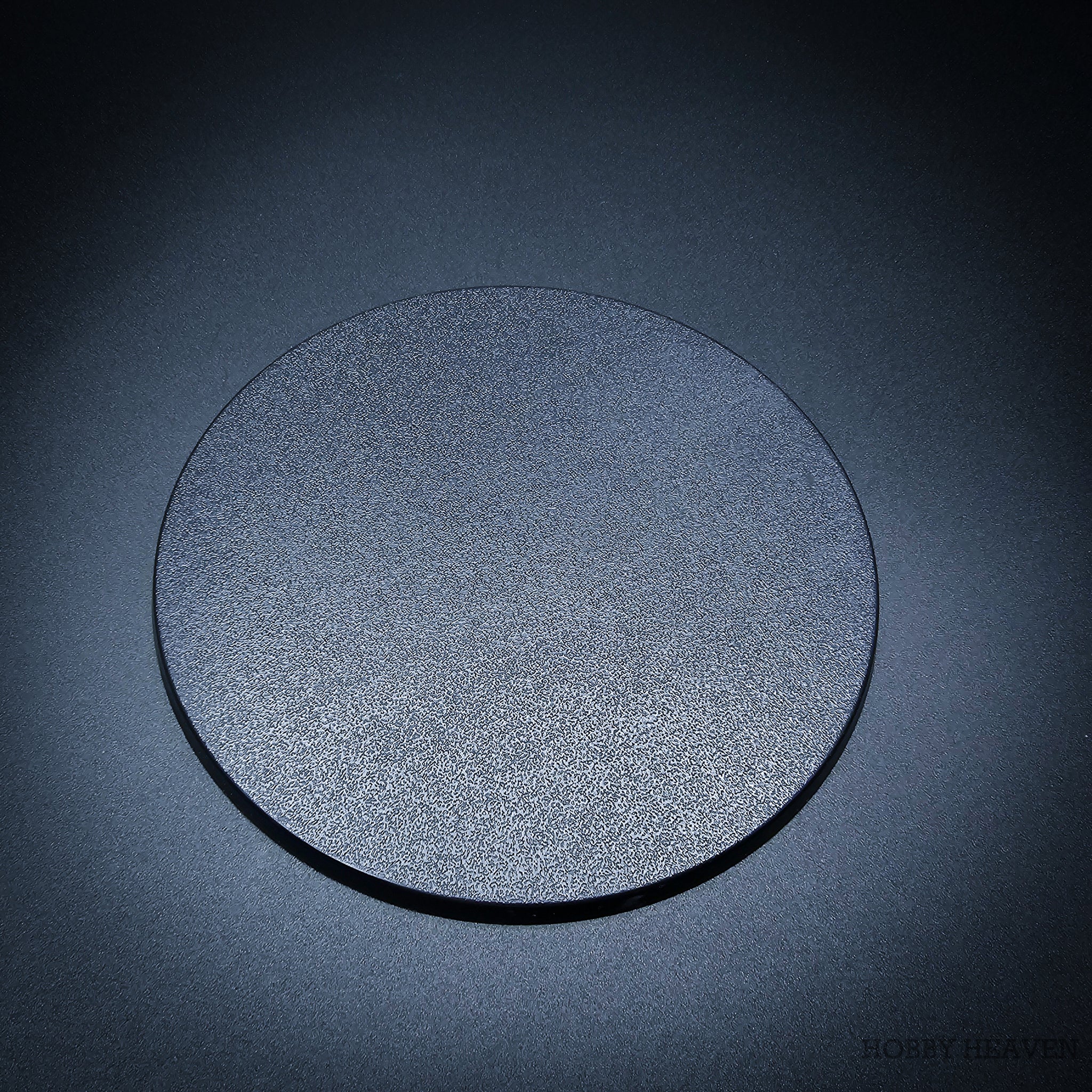 The 130mm round is a standard size — you've probably seen it before. But standard versions have issues that hobbyists complain about: thin walls that flex, warping over time, wobbling on the table, surface too smooth for basing materials.