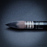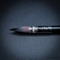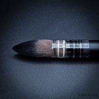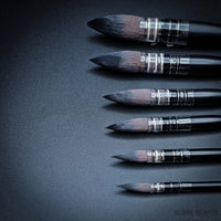 The goal was simple: replicate the softness, spring, and water capacity of natural Petit Gris squirrel hair, but without using animal fur. If you've worked with natural squirrel brushes before, you'll recognize the familiar feel — that gentle give and excellent water retention.