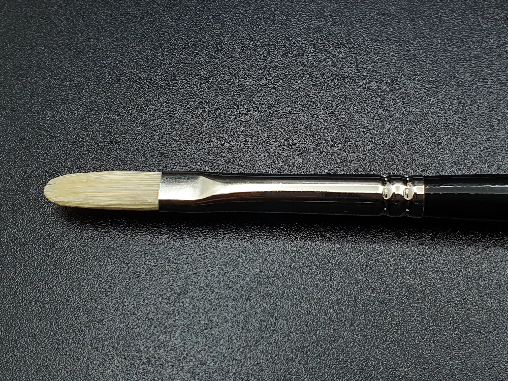 Oil — the natural bristle's firm spring and textured release are perfectly suited to oil painting. The brush loads well with heavy paint and holds its shape through long strokes.