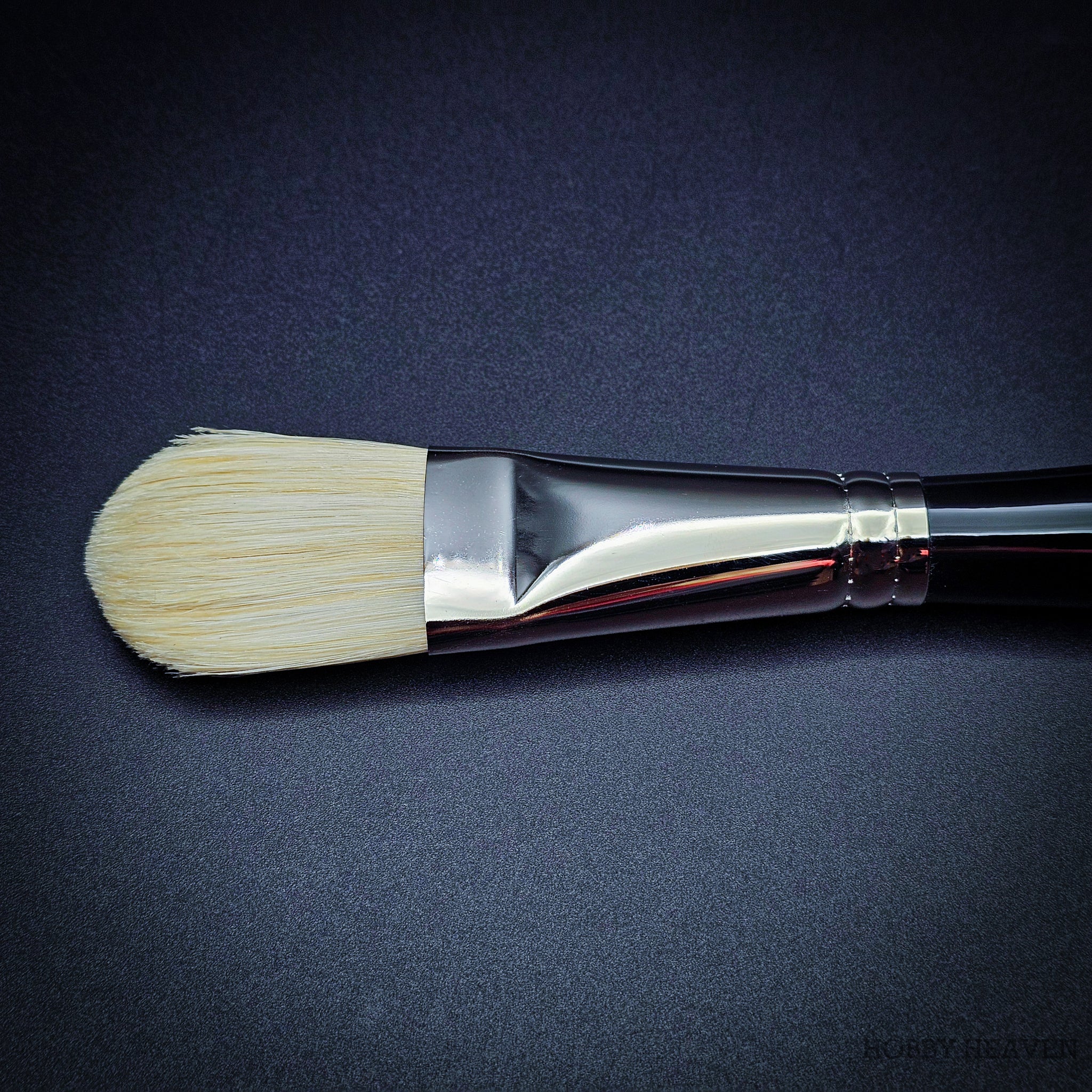 This is an expressive brush, not a precision instrument. It's built for painters who want visible texture, organic marks, and a stroke that carries energy across the canvas. The filbert shape — that rounded, slightly tapered flat — blends the coverage of a flat with a softer edge, making it a favourite for portrait painters, landscape artists, and anyone working in oils or heavy-body acrylics where brush character matters.