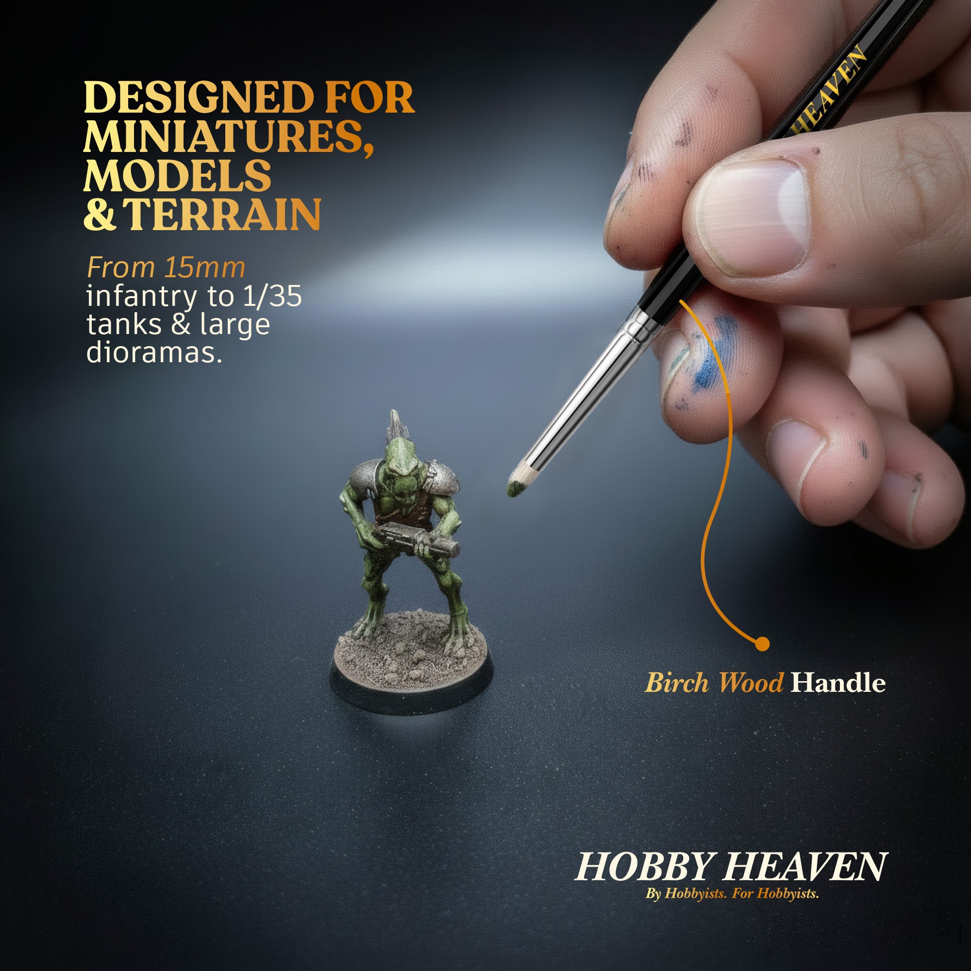 Whether you're painting entire gaming armies, building detailed dioramas, working across multiple scales, or switching between character miniatures and vehicles, this set ensures you always have exactly the right tool. Natural goat hair bristles deliver professional control at every scale.