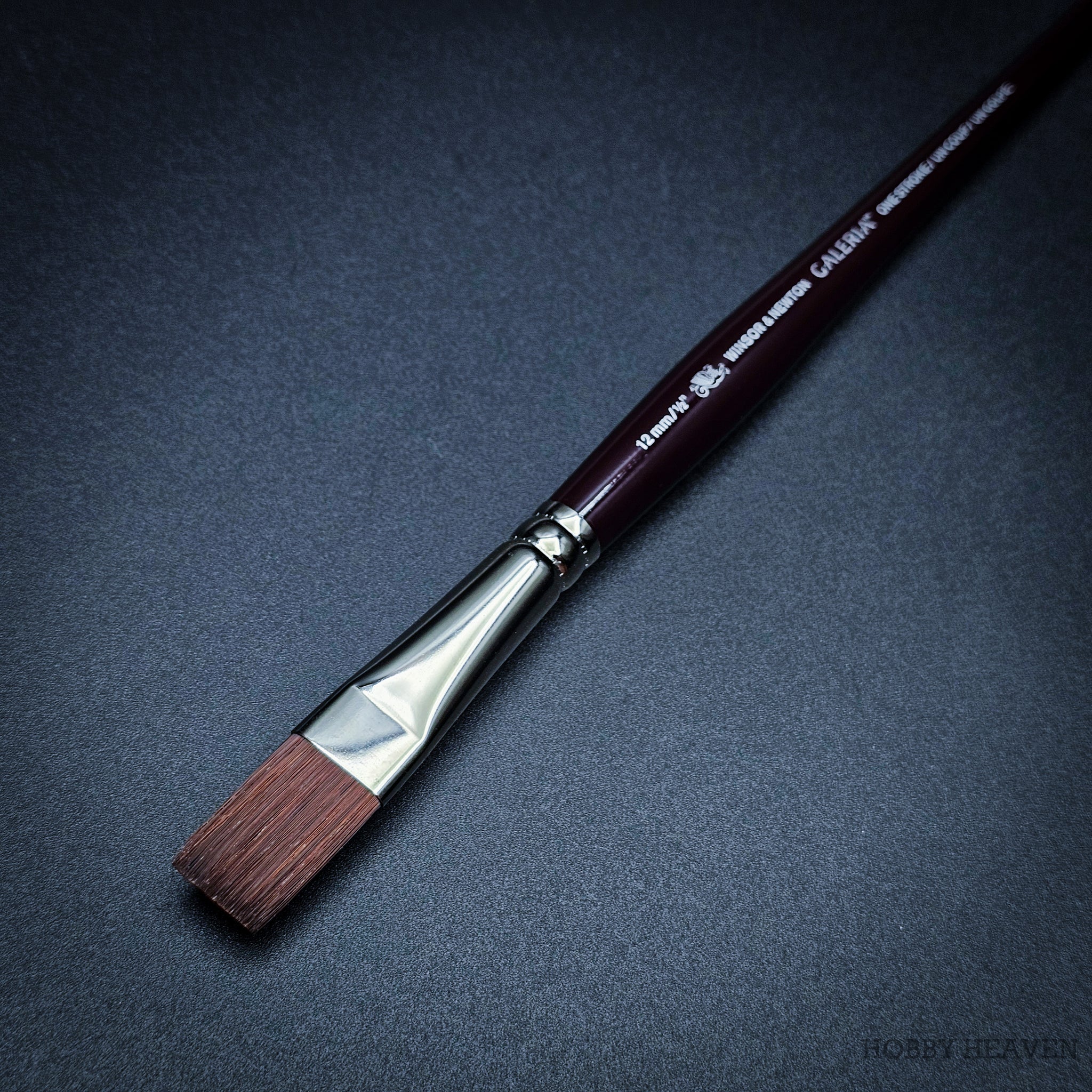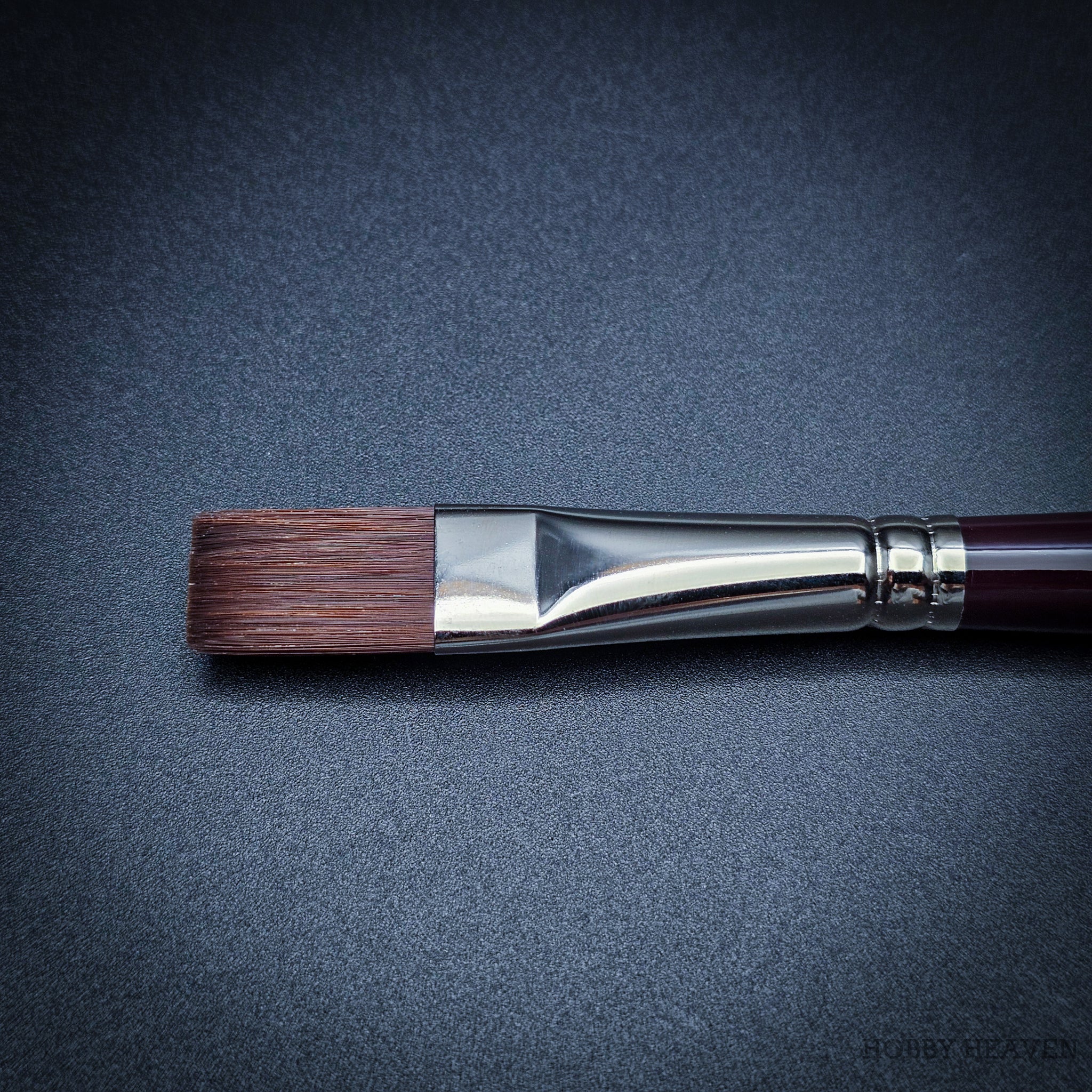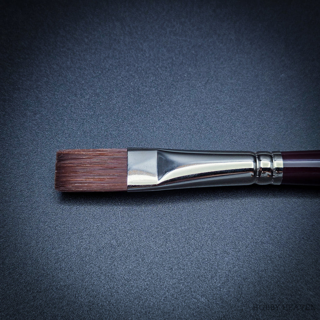 A flat brush that lays down smooth color in one pass. The 12mm width covers backgrounds and washes efficiently without taking forever. Great for sharp edges and architectural elements too.